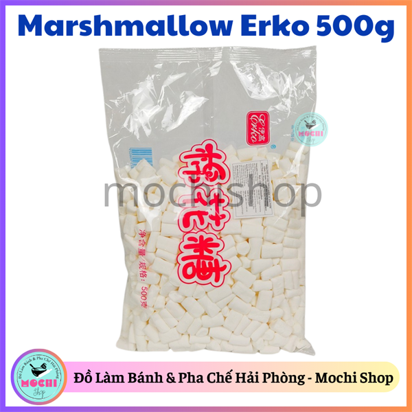 - Công dụng: Kẹo Marshmallow Erko 500g là món kẹo dẻo thơm ngon, mềm mịn, thích hợp để ăn trực tiếp, dùng trong các món tráng miệng, pha chế đồ uống, hoặc làm nguyên liệu trang trí bánh, làm s’mores, fondue và nhiều món ăn sáng tạo khác.
