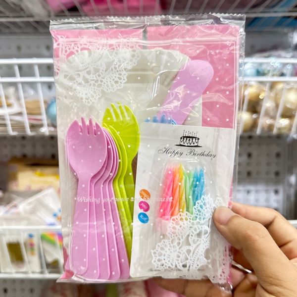 Bộ dao dĩa nến màu hồng