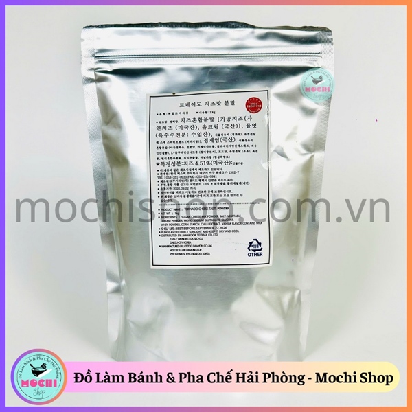 - Công dụng: Bột phô mai rắc Hàn Quốc có vị béo ngậy và hương thơm đặc trưng, thích hợp dùng để rắc lên khoai tây chiên, gà rán, bánh gạo, bắp rang bơ, hoặc làm nguyên liệu trong các món ăn vặt, tạo nên hương vị hấp dẫn và đậm đà.